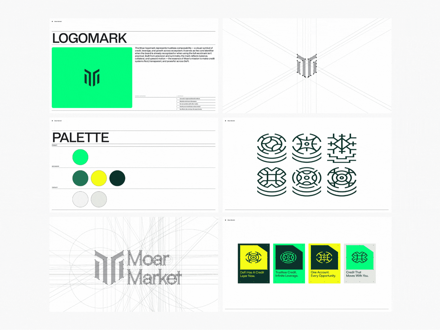 The design journey began with deep discovery sessions with founders. Through these collaborations, this process helped establish a clear narrative around Moar's value proposition, leveraging transparency, simplicity, and trustworthiness. With user experience in mind, I simultaneously developed and designed a strategic brand identity for Moar. The narrative centred around innovation, uniqueness, empowerment, and trust, all crucial attributes in the DeFi world. This brand identity wasn’t just aesthetics, it strategically positioned Moar to stand out clearly in a crowded market